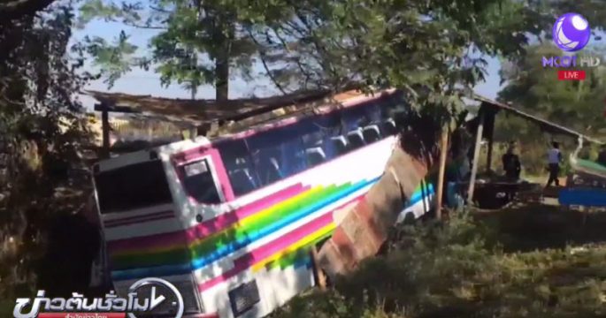 รถทัวร์เบรกไม่อยู่พุ่งชนแผงขายปลา ริมทางหลวงสายนครสวรรค์-พิษณุโลก ก่อนตกร่องคูน้ำข้างทาง ทำให้คนขับรถทัวร์และผู้ที่นั่งมาด้วย บาดเจ็บ