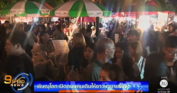 พิษณุโลก เปิดตลาดถนนคนเดินยามค่ำคืน ให้ชาวนานำข้าวสารมาขาย ได้รับความสนใจเป็นอย่างมาก