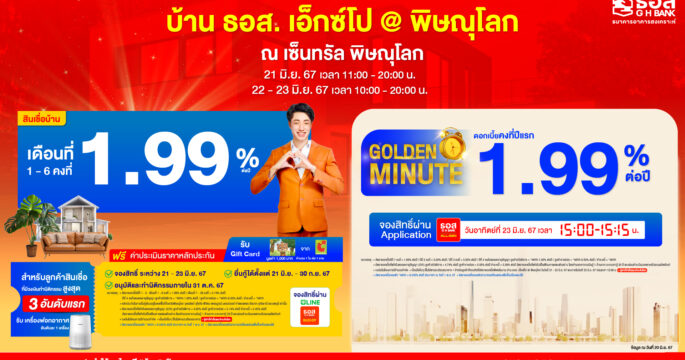 ธอส. เอ็กซ์โป @พิษณุโลก จัดเงินกู้ เงินฝาก ดอกเบี้ยพิเศษสุด วันที่ 21-23 มิ.ย.นี้ เอาใจชาวภาคเหนือตอนล่าง