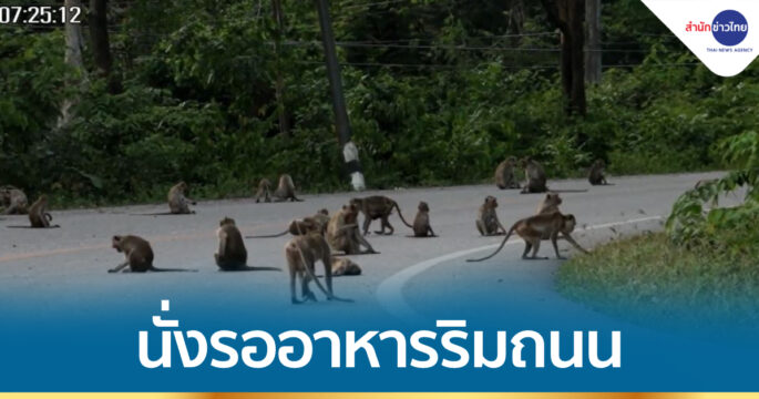 ฝูงลิงวอกและลิงแสม วัดถ้ำเทพบันดาล อ.วิเชียรบุรี จ.เพชรบูรณ์ ออกมานั่งรออาหารจากนักท่องเที่ยวริมถนน ด้วยสภาพหิวโซ