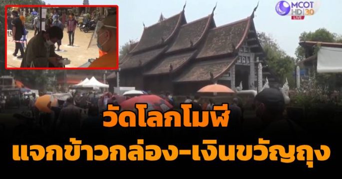 เจ้าอาวาสวัดโลกโมฬี จ.เชียงใหม่ แจกข้าวกล่อง น้ำดื่ม พร้อมเงินสด 20 บาทเป็นขวัญถุง ให้กับผู้ได้รับผลกระทบจากโควิด-19 มีชาวบ้านกว่า 300 คน ยืนต่อแถวยาวรอบวัด