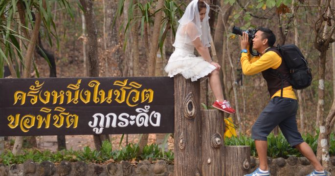 จุมพิตแรกของ “พี่แมว” สุเทพ หนุ่มใหญ่จากยโสธรวัย 52 ปี ที่มีต่อ “พี่ยุ” ธนาภา สาวใหญ่วัย 56 ปี ชาว อ.ทุ่งหว้า จ.สตูล เดินเท้า 1,200 กิโลเมตร พิสูจน์รักแท้ ทั้งที่ทั้งคู่ไม่เคยพบหน้ากันมาก่อน หลังจากคบหาดูใจกันผ่านโลกออนไลน์