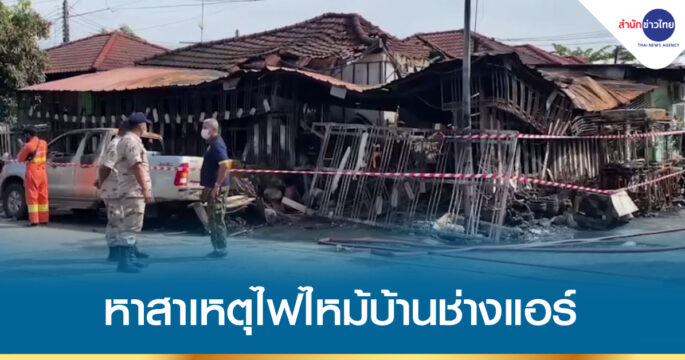 พฐ.ลงพื้นที่ตรวจสอบบ้านช่างแอร์ หาสาเหตุไฟไหม้ ดับ 3 ศพ