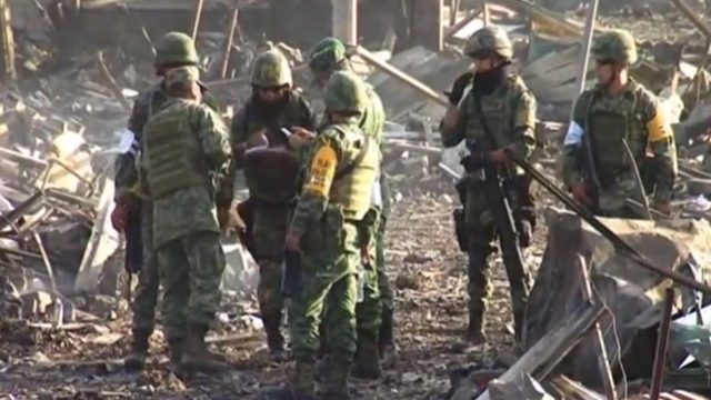 คณะเจ้าหน้าที่นิติเวชเร่งพิสูจน์อัตลักษณ์บุคคลศพดำเป็นตอตะโกจากเหตุระเบิดใหญ่ที่ตลาดจำหน่ายพลุใหญ่ของประเทศชานกรุงเม็กซิโกซิตี