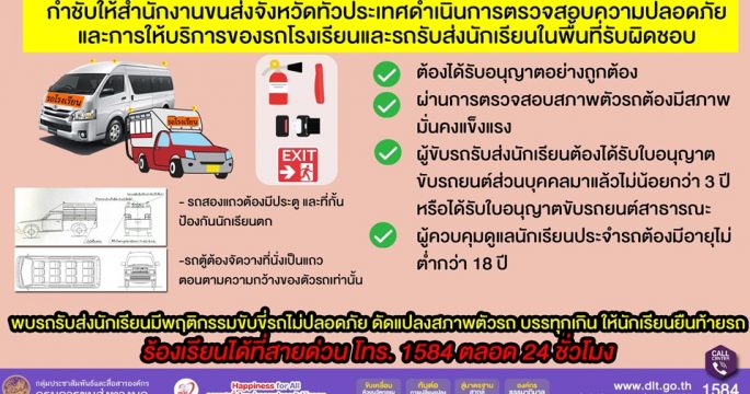 กรมการขนส่งทางบกเตรียมพร้อมรับเปิดเทอม ย้ำตรวจเข้มรถโรงเรียน – รถรับส่งนักเรียนทุกคันต้องปลอดภัย