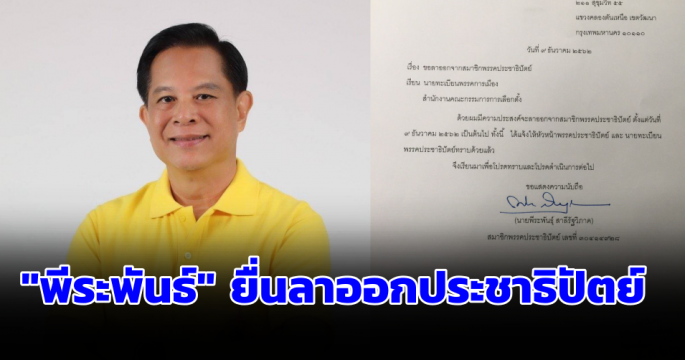 “พีระพันธุ์” ยื่นใบลาออกจากประชาธิปัตย์ อีกคน เผยเป็นเหตุผลส่วนตัว แต่ยังไม่เลิกการเมือง