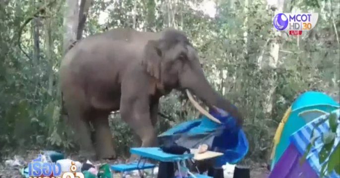เล่นเอานักท่องเที่ยวระทึก เมื่อ “พี่ดื้อ” ช้างป่าเขาใหญ่ออกเดินตรวจตามเต้นท์ ที่กางในป่าอุทยานแห่งชาติเขาใหญ่ แถมยังช่วยรื้อให้เสร็จ เพราะไปตั้งนอกเขตที่อุทยานกำหนดฯ
