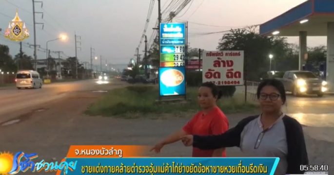 แม่ค้าขายไก่ย่างชาวหนองบัวลำภู พร้อมพี่สาว ร้องถูกชายแต่งกายคล้ายตำรวจบุกเข้าบ้าน อุ้มขึ้นรถ ยัดข้อหาขายหวยเถื่อน รีดเงินรวม 12,000 บาท ก่อนปล่อยตัวทิ้งกลางทาง หลังร้องเรียนทางการผู้ก่อเหตุโผล่เอาเงินคืน แต่ผู้เสียหายยังข้องใจใช่ตำรวจจริงหรือไม่