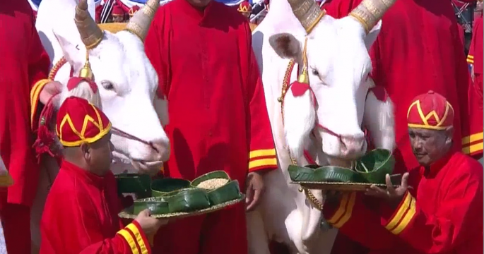 พระราชพิธีพืชมงคลจรดพระนังคัลแรกนาขวัญ ประจำปี 2561 ณ มณฑลพิธีท้องสนามหลวง ปีนี้พระโคกินน้ำ หญ้าและเหล้า พยากรณ์ว่า น้ำท่าจะบริบูรณ์พอควร-เศรษฐกิจรุ่งเรือง-ค้าขายดีขึ้น