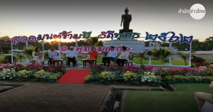 พุทธศาสนิกชน ร่วมสวดมนต์ข้ามปี 2563 ที่พุทธมณฑล