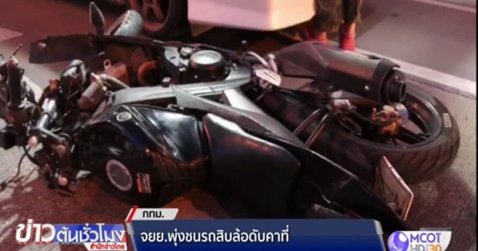 หนุ่มขับ จยย. พุ่งชนท้ายรถสิบล้อบริเวณแยกไฟแดงบ้านสวนน้ำ ถ.ประเสริฐมนูญกิจ ร่างกระเด็นไกล 5 เมตร เสียชีวิตคาที่