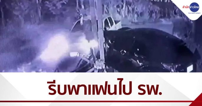 ขับรถกระบะรีบพาแฟนไปส่งโรงพยาบาล พุ่งชนรถยนต์ที่จอดอยู่ มีผู้ได้รับบาดเจ็บและทรัพย์สินผู้อื่นได้รับความเสียหาย