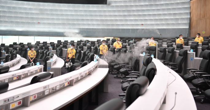 วุฒิสภาพ่นยาฆ่าเชื้อโควิด-19 ภายในอาคารทุกชั้นเป็นเวลา 3 วัน สร้างความมั่นใจให้บุคลากรที่จะเข้ามาทำงาน