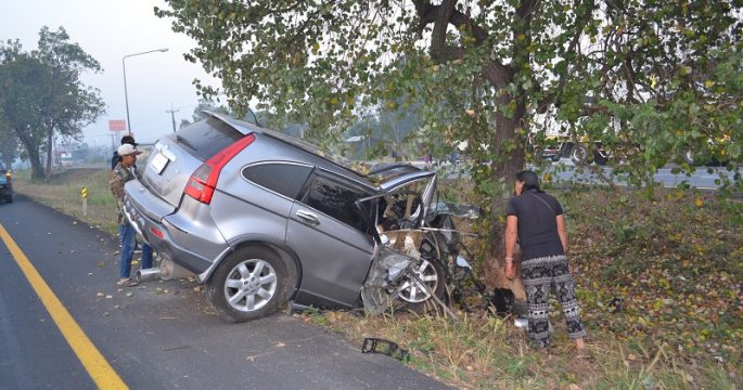 เกิดอุบัติเหตุเช้านี้ถนนสายลำปาง พ่อขับรถซีอาร์วีพาลูกสาวจบเกียรตินิยมจะไปสมัครสอบชิงทุนใน กทม. เสียหลักชนต้นไม้อย่างแรงเสียชีวิตทั้งคู่