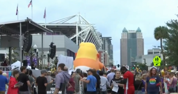 ขณะ ‘ทรัมป์’ เตรียมประกาศตัวลงชิงตำแหน่งประธานาธิบดีสหรัฐ มีกลุ่มผู้ชุมนุมต่อต้านทรัมป์หลายร้อยคน ปักหลักประท้วงใกล้สถานที่จัดงาน รัฐฟลอริดา