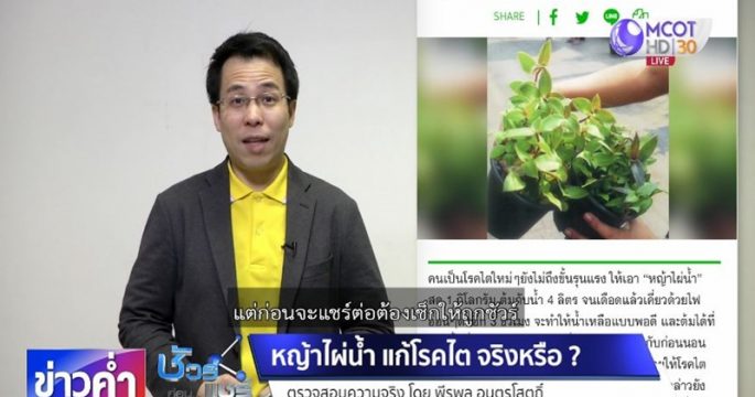 บนสังคมออนไลน์แชร์แนะนำว่าคนที่เป็นโรคไตใหม่ๆ ให้เอาสมุนไพร “หญ้าไผ่น้ำ” มาต้มดื่มวันละ 2 แก้ว ช่วยให้โรคไตดีขึ้น และหายได้ในที่สุด เรื่องนี้จริงหรือไม่ ติดตามจากศูนย์ชัวร์ก่อนแชร์