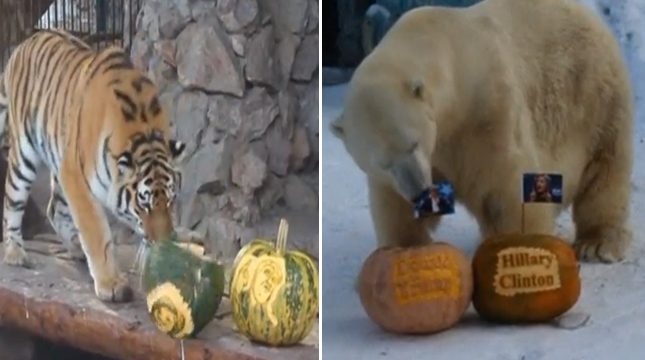 สวนสัตว์ในรัสเซีย ให้เสือและหมีทำนายผลการเลือกตั้งประธานาธิบดีสหรัฐ ผลการทำนายออกมาไม่เป็นเอกฉันท์