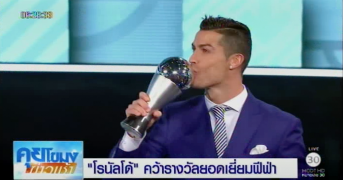 คริสเตียโน โรนัลโด คว้ารางวัลนักเตะยอดเยี่ยมแห่งปีของฟีฟ่า