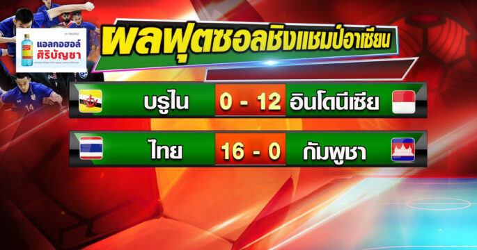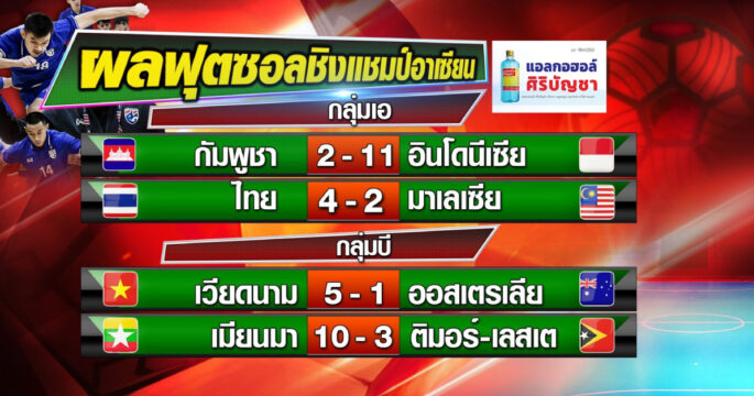 ทีมโต๊ะเล็กไทย ชนะ มาเลเซีย เก็บชัย 3 นัดรวด เข้ารอบรองชนะเลิศ ศึกฟุตซอลชิงแชมป์อาเซียน เย็นนี้ (6 พ.ย.) ลุ้นแย่งแชมป์กลุ่มกับเวียดนาม