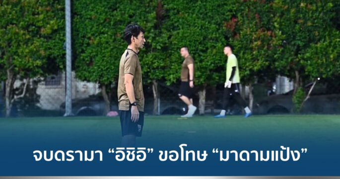 จบดรามาบอลไทย “มาซาทาดะ อิชิอิ” ขอโทษ “มาดามแป้ง” ฃพร้อมลุยต่อ นำนักเตะฝึกซ้อมทันที ก่อนฟาดแข้งสิงคโปร์ วันพรุ่งนี้ (17 ธ.ค.) ศึกฟุตบอลชิงแชมป์อาเซียน