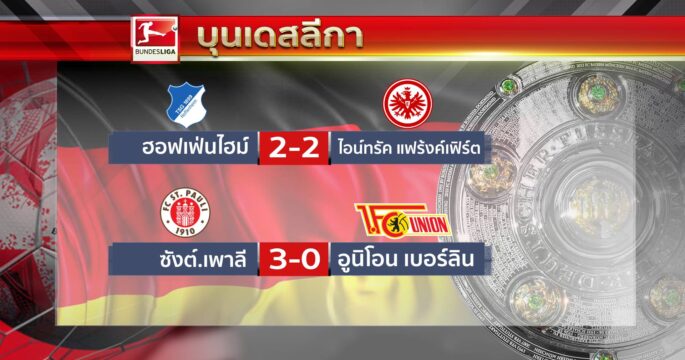 ฮอฟเฟ่นไฮม์ บุกเสมอ ไอน์ทรัค แฟรงค์เฟิร์ต 2-2 ฟุตบอลบุนเดสลีกา