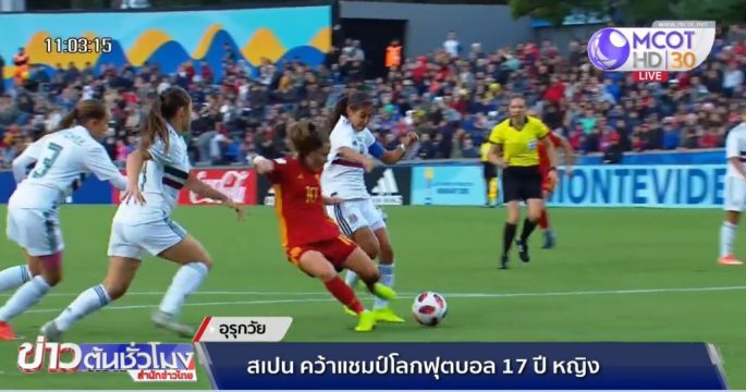 ฟุตบอลหญิงอายุไม่เกิน 17 ปี ชิงแชมป์โลก ที่สนามเอสตาดิโอน คาเรา ประเทศอุรุกวัย รอบชิงชนะเลิศ ทีมชาติสเปน ที่เอาชนะ นิวซีแลนด์ มา 2-0 ในรอบรองชนะเลิศ ชุดเสื้อสีแดง พบกับ เม็กซิโก ที่เฉือนชนะ แคนดา มา 1-0
