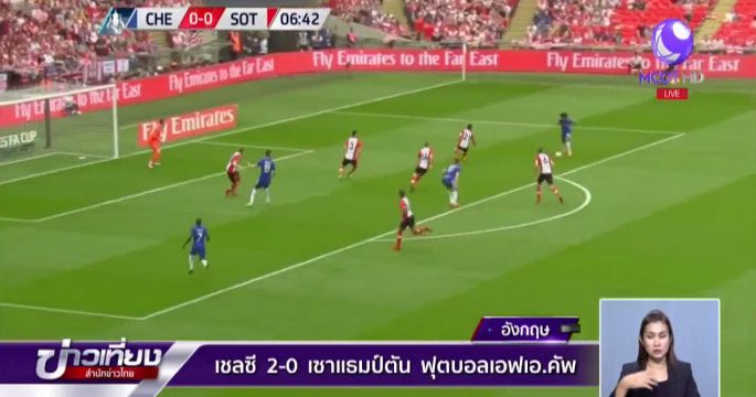 ฟุตบอลเอฟเอ คัพ อังกฤษ ได้คู่ชิงชนะเลิศแล้ว หลังจากเมื่อคืนที่ผ่านมา เชลซี ชนะ เซาธ์แฮมป์ตัน 2-0 โดย “ชิรูด์ และ โมราต้า” ซัดคนละเม็ด พาทีมเข้าไปชิงชนะเลิศกับแมนฯ ยูไนเต็ด
