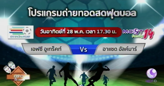 เอฟซี อูเทร็คท์ พบ อาแซด อัลค์มาร์ ในฟุตบอลเอเรดิวิซี ลีก เกมเพลย์ออฟ นัดชิงชนะเลิศ นัดที่ 2 ช่อง MCOT Family หมายเลข 14 ถ่ายทอดสด เย็นนี้ 17.30 น.