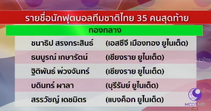 มิโลวาน ราเยวัช ประกาศรายชื่อ 35 นักเตะทีมชาติไทย ชุดสู้ศึกฟุตบอลโลกรอบคัดเลือก กับสหรัฐอาหรับเอมิเรตส์ โดย “ลีซอ” ธีรเทพ วิโนทัย กลับมามีชื่อติดทีมชาติไทยอีกครั้งในรอบ 3 ปี