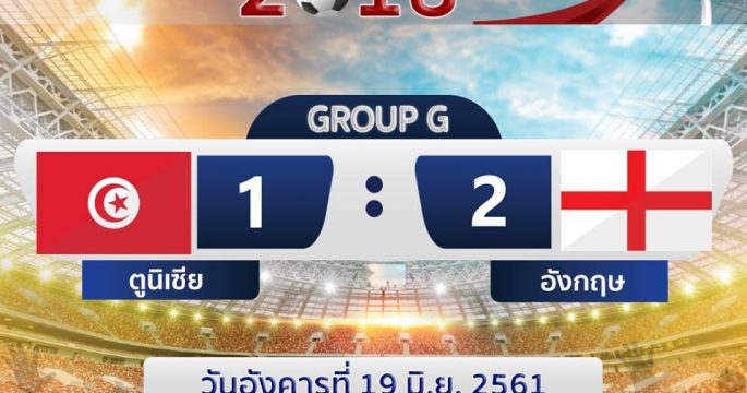 “แฮรี เคน” ทำคนเดียว 2 ประตู ช่วยให้ อังกฤษ เฉือนชนะ ตูนิเซีย 2-1 ศึกฟุตบอลโลก 2018 รอบแบ่งกลุ่ม นัดแรก กลุ่ม จี