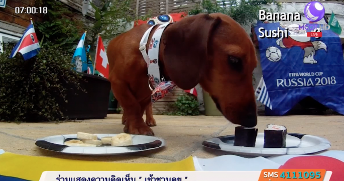 สัตว์ทำนายผลฟุตบอลโลก 2018 วันนี้ เจ้าสุนัข R2D2 ทำนายผลคู่ โคลอมเบีย พบ ญี่ปุ่น