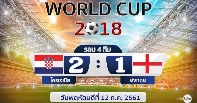 โครเอเชีย ดับฝันอังกฤษ ชนะช่วงต่อเวลาพิเศษ 2-1 หลังเสมอในเวลาปกติ 1-1 โดยได้ประตูชัยจาก มาริโอ มานด์ซูคิช ทำให้โครเอเชียเข้าชิงฟุตบอลโลกเป็นสมัยแรก พบฝรั่งเศส วันอาทิตย์ที่ 15 ก.ค.นี้