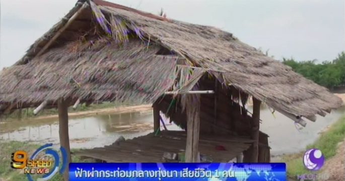 เกิดเหตุฟ้าผ่ากระท่อมกลางทุ่งนาใน จ.มหาสารคาม ภรรยาวัย 67 ปี เสียชีวิต ส่วนสามีบาดเจ็บ สาเหตุคาดกรรไกรในมือผู้เสียชีวิต หรือมือถือที่พกติดตัว อาจเป็นสื่อนำฟ้าผ่า