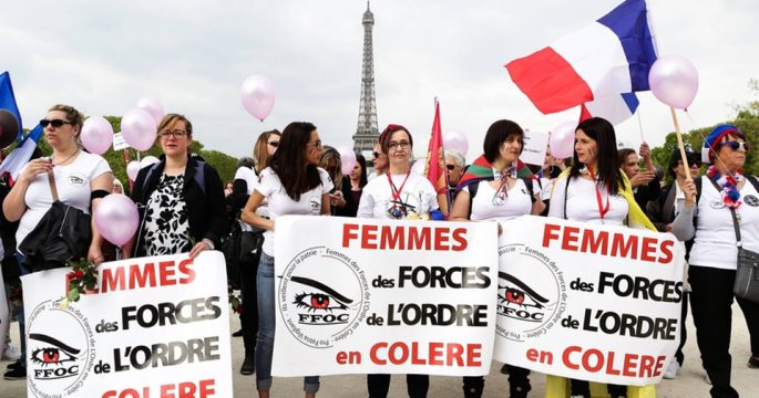 ภรรยาตำรวจฝรั่งเศสและผู้สนับสนุนกว่า 100 คนเดินขบวนในกรุงปารีสวานนี้ ประท้วงเหตุคนร้ายยิงตำรวจเสียชีวิตและบาดเจ็บที่ถนนฌองเซลิเซ่เมื่อคืนวันพฤหัสบดีที่ผ่านมา