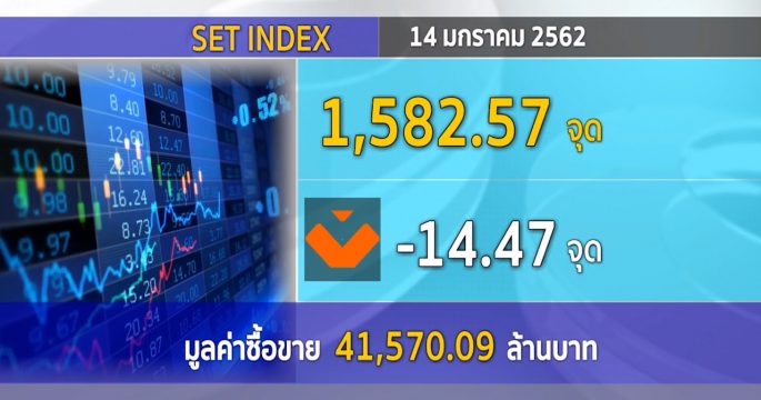 ตลาดหุ้นไทย (14 ม.ค.) ปิดการซื้อขายที่ 1,582.57 จุด ลบ 14.47 จุด มูลค่าการซื้อขาย 41,570.09 ล้านบาท