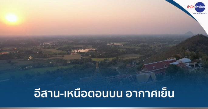 กรมอุตุฯ เผยประเทศไทยตอนบนมีอากาศเย็นในตอนเช้า อุณหภูมิจะลดลงอีก 1-2 องศาฯ ในภาคเหนือ ส่วนภาคอีสานตอนล่าง มีฝนเล็กน้อยบางแห่ง