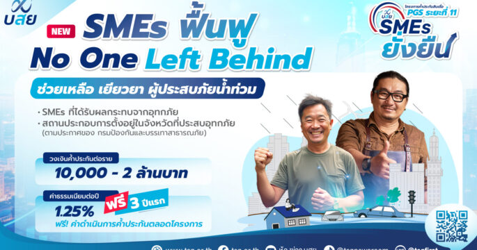 บสย.เร่งเครื่องช่วย SMEs ฟื้นฟูกิจการหลังน้ำท่วม หนุนรายย่อย อาชีพอิสระ เข้าถึงแหล่งเงินทุน ลดกู้เงินนอกระบบ