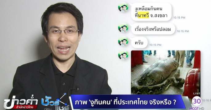 สังคมออนไลน์มีการแชร์ภาพระบุว่าเป็นจังหวัดหนึ่งในภาคใต้ของประเทศไทย เกิดเหตุงูขนาดใหญ่กินคนเข้าไป อย่างน่ากลัว เรื่องนี้จริงหรือไม่ ติดตามจากศูนย์ชัวร์ก่อนแชร์
