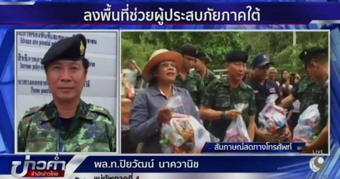 พล.ท.ปิยวัฒน์ นาควานิช แม่ทัพภาคที่ 4 ให้สัมภาษณ์กับสำนักข่าวไทย ถึงการลงพื้นที่ให้ความช่วยเหลือเมื่อช่วงเช้าที่ผ่านมา