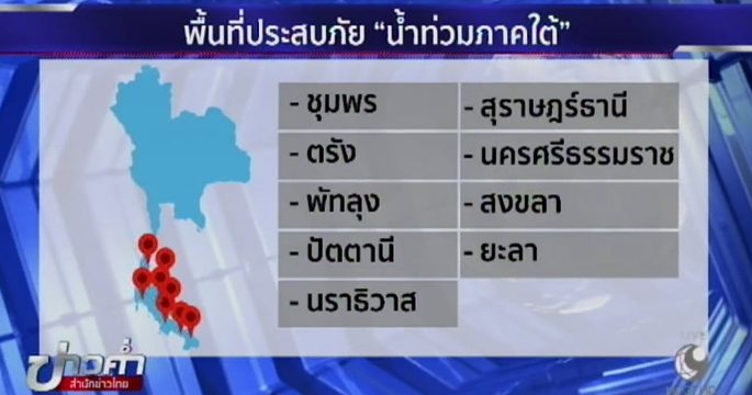 ปภ.สรุปสถานการณ์น้ำท่วมล่าสุด 9 จังหวัดภาคใต้