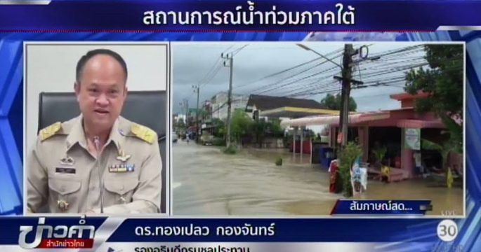 สำนักข่าวไทย ตรวจสอบสถานการณ์น้ำท่วม กับดร.ทองเปลว กองจันทร์ รองอธิบดีและโฆษกกรมชลประทาน ถึงภาพรวมน้ำท่วมภาคใต้ในขณะนี้ รวมทั้งแนวทางการแก้ไขปัญหา