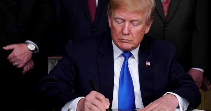 ประธานาธิบดีโดนัลด์ ทรัมป์ ของสหรัฐ ลงนามในคำสั่งประธานาธิบดีเพื่อใช้มาตรการเก็บภาษีนำเข้าเหล็กและอะลูมิเนียม