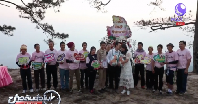 เช้าวันนี้บนยอดภูกระดึง บรรยากาศคึกคักเป็นพิเศษ เนื่องจากมีนักท่องเที่ยวขึ้นไปสัมผัสอากาศหนาวบนยอดภู และร่วมพิธีจดทะเบียนสมรสวันวาเลนไทน์