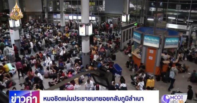 บรรยากาศที่สถานีขนส่งหมอชิต 2 ยังคึกคักต่อเนื่อง โดย บขส. เตรียมรถให้บริการ 9,000 เที่ยว คาดวันนี้จะมีประชาชนเดินทางกลับภูมิลำเนามากถึง 180,000 คน