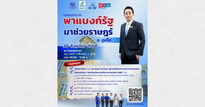 กรุงเทพฯ 14 ส.ค. – 3 แบงก์รัฐ ผนึกกำลังครั้งสำคัญ จัดใหญ่ “พาแบงก์รัฐ มาช่วยราษฎร์” จ.ภูเก็ต มอบโปรพิเศษพาเอสเอ็มอีถึงแหล่งทุนดอกเบี้ยต่ำ คู่เสริมแกร่งครบวงจร ห้ามพลาด 30 ส.ค.นี้ 3 สถาบันการเงินเฉพาะกิจของรัฐ ภายใต้กำกับกระทรวงการคลัง ได้แก่ ธนาคารพัฒนาวิสาหกิจขนาดกลางและขนาดย่อมแห่งประเทศไทย (ธพว.) หรือ SME D Bank ธนาคารเพื่อการส่งออกและนำเข้าแห่งประเทศไทย (EXIM BANK) และ บรรษัทประกันสินเชื่ออุตสาหกรรมขนาดย่อม (บสย.) ประสานพลัง ขับเคลื่อนนโยบายรัฐบาล และกระตุ้นเศรษฐกิจภายในประเทศ จัดโครงการ “พาแบงก์รัฐ มาช่วยราษฎร์” นำบริการจาก 3 หน่วยงานมาสนับสนุนผู้ประกอบการเอสเอ็มอี จ.ภูเก็ต และใกล้เคียง ถึงพื้นที่อย่างครบถ้วนในจุดเดียว ในวันที่ 30 สิงหาคม 2568 เวลา 09.00-12.30 น. ณ ห้อง DATA THEATRE […]