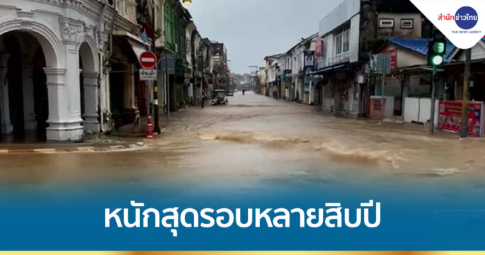 ฝนตกหนักต่อเนื่อง ประกอบกับน้ำทะเลหนุน ทำน้ำท่วมภูเก็ต ทั้ง 3 อำเภอ โดยเฉพาะย่านเมืองเก่า แลนด์มาร์กของจังหวัด