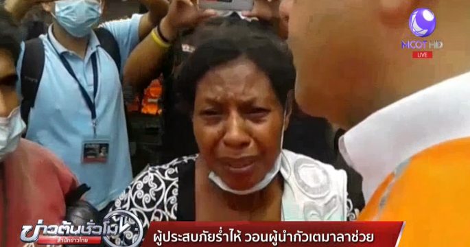 หญิงคนหนึ่งร่ำไห้เดินเข้ามาหา ปธน.จิมมี่ โมราเลส ของกัวเตมาลา ขอความช่วยเหลือ หลังสมาชิกในครอบครัวสูญหายจากเหตุภูเขาไฟฟัวโกระเบิด