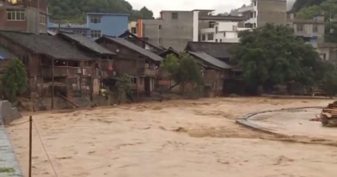 พายุฝนพัดถล่มมณฑลกุ้ยโจวของจีน บางพื้นที่น้ำท่วมสูงเกือบ 2 เมตร ไม่มีรายงานผู้บาดเจ็บหรือเสียชีวิต แต่มีผู้สูญหาย 4 คน