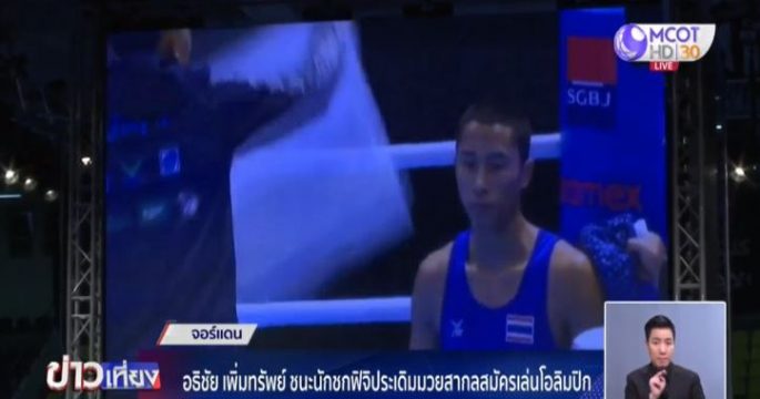 ขุนพลเสื้อกล้าม “อธิชัย เพิ่มทรัพย์” ประเดิมนัดแรกในศึกมวยสากลสมัครเล่นโอลิมปิก รอบคัดเลือกโซนเอเชีย-โอเชียเนีย ที่จอร์แดน สวยหรู เอาชนะคู่ชกจากฟิจิไปได้
