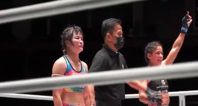 อัลลิเซีย เฮลเลน รอดริเกส นักชกสาวจากบราซิล ชนะคะแนน แสตมป์ แฟร์เท็กซ์ คว้าแชมป์ ONE มวยไทย รุ่นอะตอมเวตหญิง